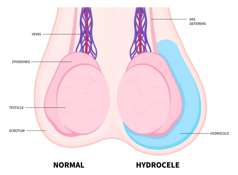 Hydroceles are common in newborns but usually resolve on their own within the first year. In adults, hydroceles may result from injury, inflammation, or an infection in the testicle or epididymis. While not dangerous in itself, hydrocele can sometimes indicate underlying issues such as a hernia or testicular tumor, making medical evaluation necessary.